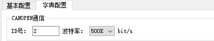 - 【波特率】選擇500Kbps(要與從站保持一致)
